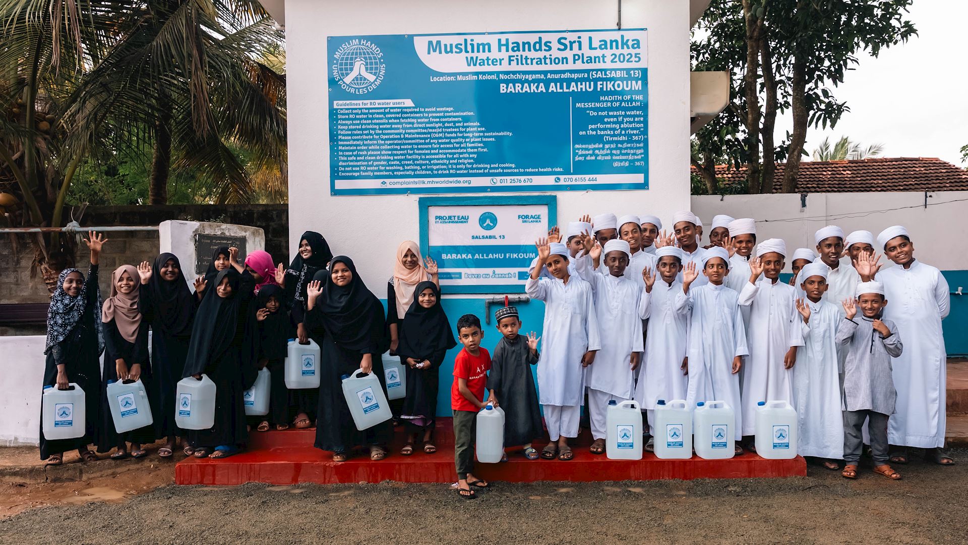 Le dernier forage inauguré, à Horrapola, a été dédié à la mémoire de quatre défunts. Sur chacune des plaques figurait le hadith suivant : « Ne gaspille pas l’eau, même si tu es au bord d’un fleuve. » (Tirmidhi – 367)