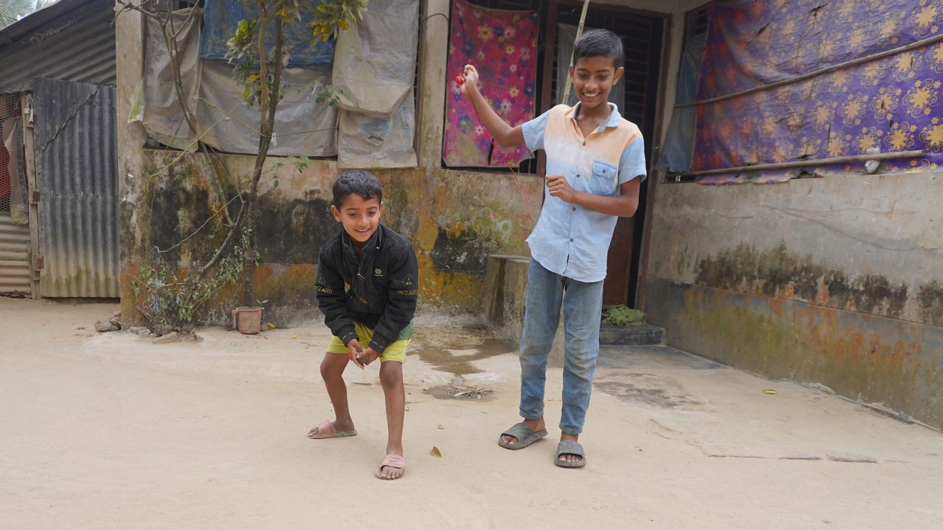 Robiul Hasan a six ans. Il vit avec sa mère, ses grands-parents et ses deux frères aînés dans une petite maison en tôle composée de trois pièces. Lorsque la saison des pluies arrive, l’eau s’infiltre par le toit et forme des flaques à l’intérieur, abîmant les quelques affaires de la famille. La famille partage la cuisine et les sanitaires avec d’autres membres du foyer élargi. Un puits tubulaire situé à proximité fournit l’eau nécessaire au quotidien, mais les conditions de vie restent précaires.